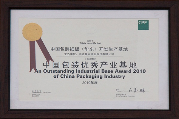 2006. | 04. | 景興紙業(yè)在世界包裝大會上被評為“中國包裝龍頭企業(yè)”,董事長朱在龍榮獲“中國杰出包裝企業(yè)家”,公司產(chǎn)品“牛皮箱板紙”獲得“中國包裝名牌產(chǎn)品”稱號。 |