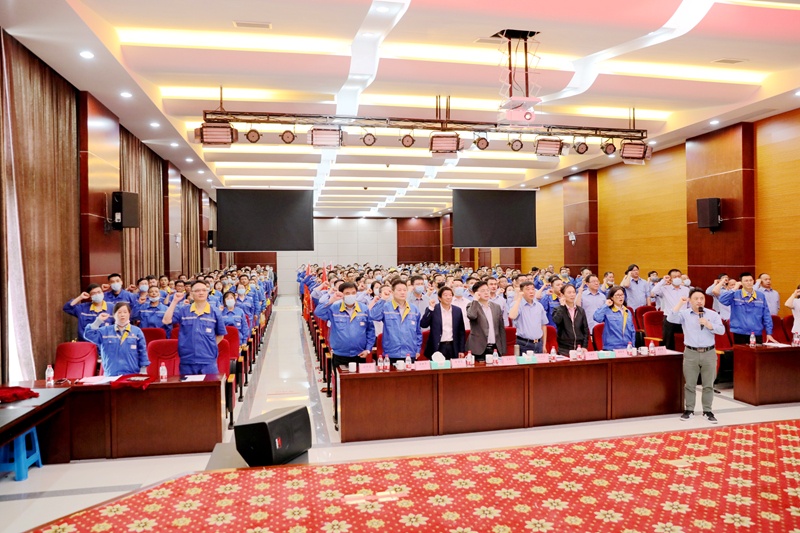 與會(huì)人員在公司副總經(jīng)理魯富貴的帶領(lǐng)下,高舉右拳向大會(huì)莊嚴(yán)宣誓,用擲地有聲的口號(hào)展示出了每一個(gè)景興人實(shí)施和執(zhí)行精益管理的信念與決心。宣誓姜本次大會(huì)的氣氛推向高潮,更加讓景興人在此刻再次凝聚士氣,奮發(fā)向上,讓團(tuán)隊(duì)力量成為本次項(xiàng)目的向心力,彰顯出全體景興人對(duì)精益管理的昂揚(yáng)斗志。